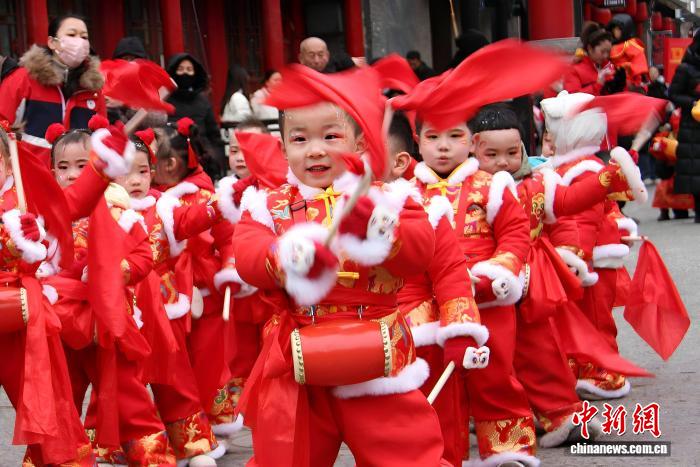 元旦假期,在山西祁县昭馀古城,一场别开生面的社火展演,吸引现场众多游客的目光。随着欢快的节奏响起速速查,秧歌、锣鼓等表演接续登场,萌娃们身着特色传统服饰,踩着欢快节奏翩翩起舞,热情迎接新年的到来。武子雅摄